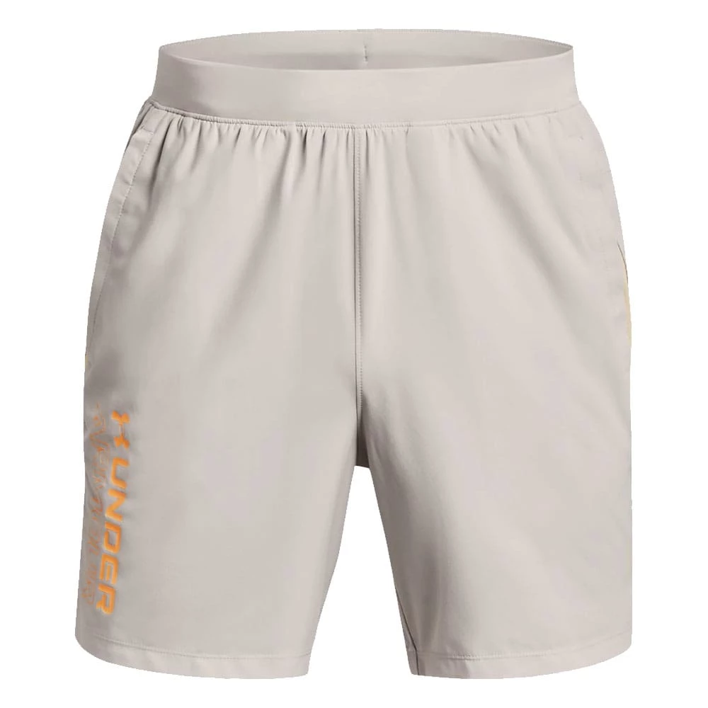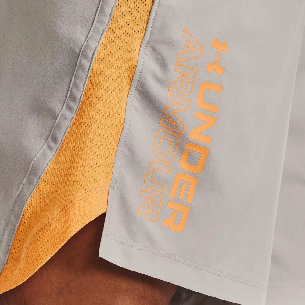 Under Armour Launch 7 Short mit Schriftzug in Grau/Gelb